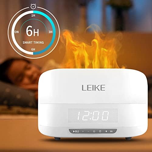 LEIKE 9″ Flame Aromatherapy Diffuser Humidifier with Bluetooth Speaker, Led Time Display Digital Alarm Clocks for Bedrooms, 400ML 7 Colors Flame Air Humidifiers Diffusers for Essential Oils Large Room