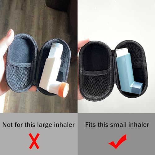 Exterior measures:4.33*2.36*1.5IN. Strong compact light weight case designed for inhaler. The compact space is just enough to place the inhaler, making it easy for you to carry.