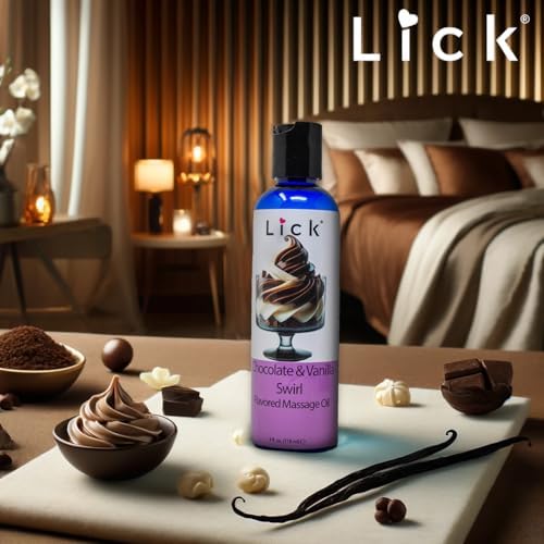 Lick Chocolate Vanilla Swirl Flavored Massage Oil – Premium Body Oil with Vitamin E, Perfect for Date Night – Edible, Warming, Coconut Infused Massage Oils for Couples 4 oz