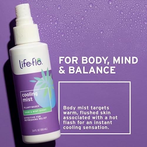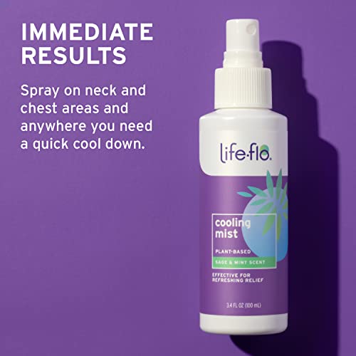 LIFE-FLO Cooling Mist, Refreshing Body Mist for Women, Instantly Cools Hot Flashes with Ginger, Organic Aloe Vera and Lavender, Fresh Sage Mint Scent, 60-Day Guarantee, Not Tested on Animals, 3.4oz