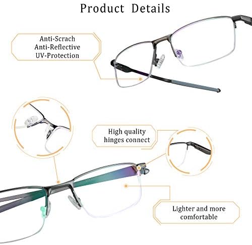 LifeArt Blue Light Blocking Glasses, Anti Eyestrain, Computer Reading Glasses, Gaming Glasses, TV Glasses for Women Men, Stylish Unisex Alloy Square Frame (Gray, No Magnification)