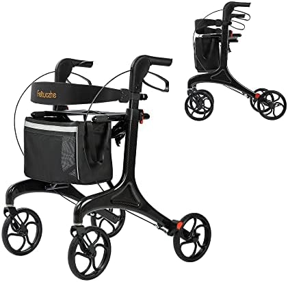 Lightweight 12.3lbs Carbon Fiber Walker for Seniors, Mobility Rolling Walker, Folding Heavy Duty rollator with Storage Bag