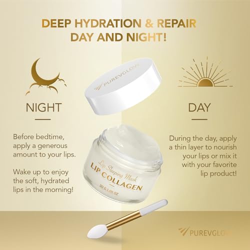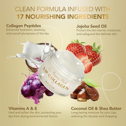 Lip Collagen Peptide Sleeping Mask: 30g Collagen Lip Plumper Balm – Overnight Lip Wrinkle Treatment Butter – Advanced Lip Line Filler Repair to Nourish Hydrate Dry Cracked Lips with Coconut Shea Oil