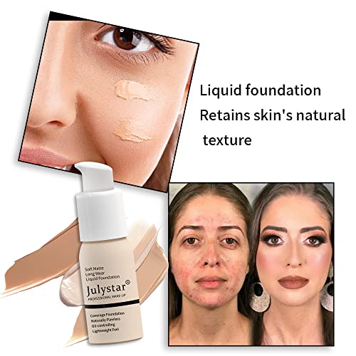 【24-Hour Staying Power】 This waterproof makeup foundation delivers 24h wear with no transfer and a shine-free matte finish from morning to night.sebum controlling function prevents oily complexion. This makeup foundation helps sculpt and brighten skin, improve skin texture, and blur pores,imperfections but not budge or transfer. Sweat-, heat- and humidity-resistant,waterproof foundation.