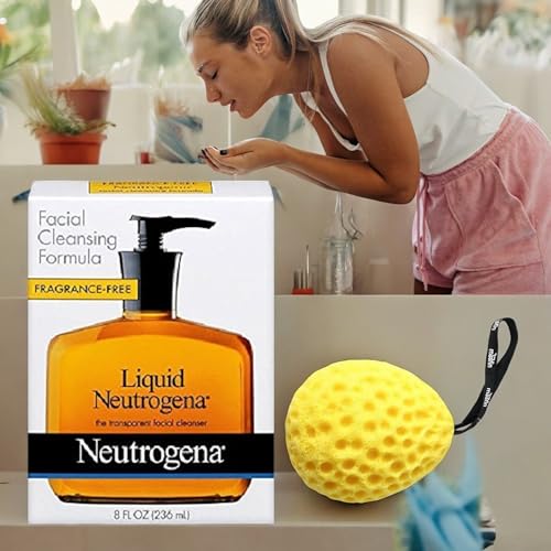 Liquid Facial Cleanser, 8 Fl Oz, Gentle Face Wash for Clear Skin Bath Sponge, Daily Skincare Routine, Non-Comedogenic, Easy to Rinse Liquid Face Cleanser (Pack of 4)