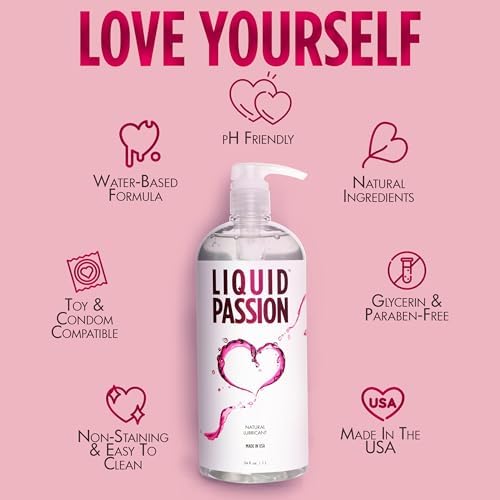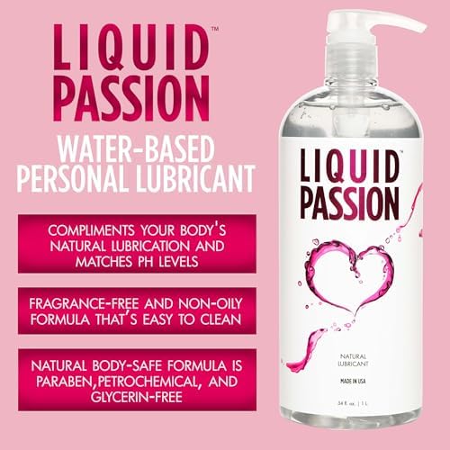 LIQUID PASSION Natural Water-Based Personal Lube, pH Friendly, Fragrance-Free & Hydrating, Safe for Toys & Condoms. Made in USA – 34 Fl Oz