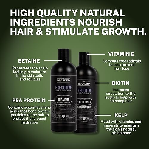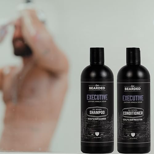 Live Bearded All-Natural Shampoo & Conditioner for Men – Hair Care Routine for Thinning Hair & Hair Loss, Hair Growth – Leather, Vanilla, Cedar