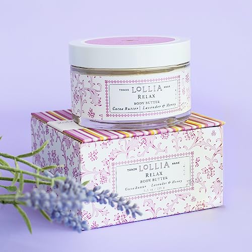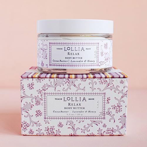 LOLLIA Relax Body Butter, 5.5 oz. – Lavender & Honey Fragrance – Shea Butter & Cocoa Butter, Body Lotion for Women, Hydrating & Smooth Body Moisturizer