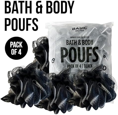 [HIGH-QUALITY LOOFAH PACK:] Basic Brands presents the Black Loofah Pack 4, offering bath loofah sponges for showers and ensuring durability with high-quality construction for long-lasting performance.