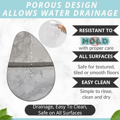 COMFORTABLE Indulge in a luxurious shower experience with our soft and secure High-Quality PVC loofah material, offering a gentle yet supportive surface for your feet. Its soft and cushiony properties provide a comfortable surface to stand on while showering, which can help reduce strain on your feet.