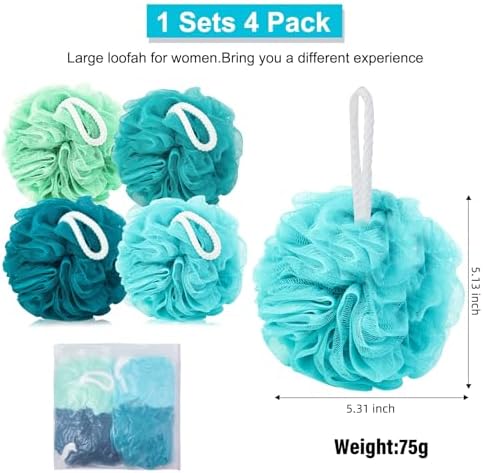 High-quality shower accessories 4-piece set: The set is rich in quantity, very suitable for different members of the family, made of soft mesh, each loofah is a good choice for exfoliation and showering