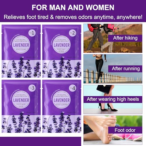 Individually Packed, Personally Designed: each of our pedicure kits comes individually packaged; Each box holds a bag of foot soak, a foot scrub, a foot mask, and a foot lotion; With these at hand, you have a complete foot care procedure at your fingertips in most places and times