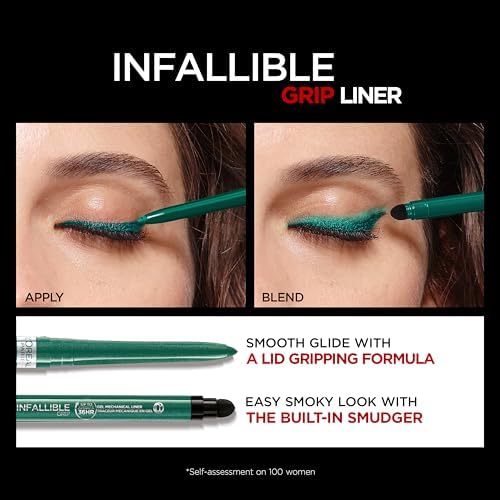 L’Oreal Paris Infallible Grip Mechanical Gel Eyeliner Pencil, Smudge-Resistant, Waterproof Eye Makeup with Up to 36HR Wear, Emerald Green, 0.01 Oz