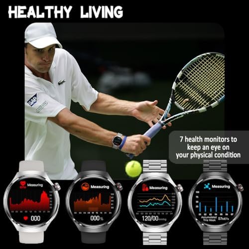 LOYEWAIER Smart Watch 4 Pro 3D Curved Glass 1.53″ Amoled Color Display 7 Parameters Quick Diagnosis Heart Rate Activity Tracker Silicone Strap Stainless Steel Bracelet for Android iOS (Black)