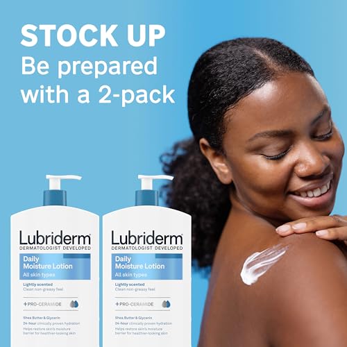 Lubriderm Daily Moisture Lotion + Pro-Ceramide with Shea Butter & Glycerin Helps Moisturize Dry Skin, Hydrating Face, Hand & Body Lotion, Light Scent, Non-Greasy, Twin Pack, 2 x 24 fl. oz