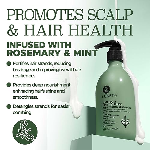Luseta Rosemary Mint Strengthening Conditioner Moisturizing and Nourishing Damaged Hair Thickening Shampoo for Thinning Hair, Promotes Scalp Health and Add Shine for All Hair Types, 16.9oz