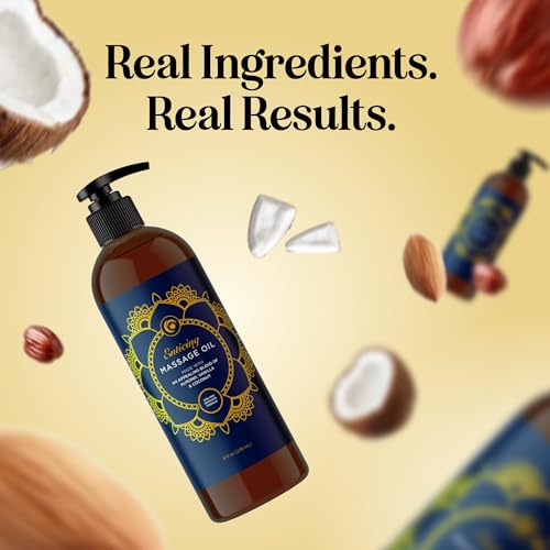 Luxurious Vanilla Massage Oil for Couples – Easy Glide Non Greasy Sweet Vanilla Sensual Massage Oils for Date Night with Silky Smooth Sweet Almond Oil Coconut and Jojoba – Vegan Non GMO & Gluten Free