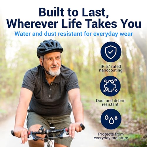 Durable- IP 57 rated Nano-coating for superior longevity. From rain and sweat to dust and wind our hearing aids are durable and built to last. includes 1 year warranty