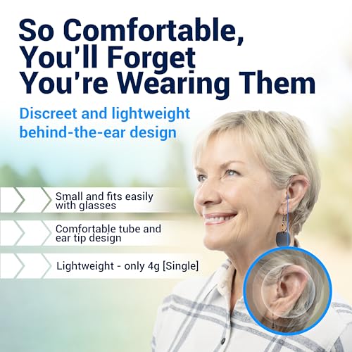 Comfortable and Discreet- nearly invisible, with medical grade soft silicon ear tips, proprietary tube design, tiny hearing aid rests behind your ear. You might forget you have them on.