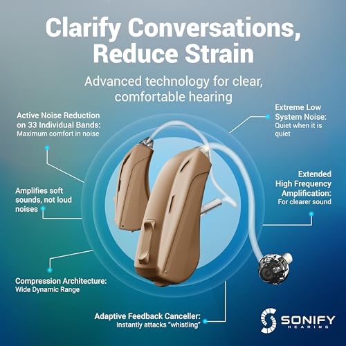 Mach I hearing aids offer the same cutting edge features as hearing aids costing thousands more. With active noise reduction on 33 bands, dual directional MEMS microphones, and a digital signal processor giving HD sound, Mach I hearing aids are perfect for adults with mild to moderate hearing loss. Whether at home, at work, or at play and everything in between, Mach I hearing aids just work. They are nearly invisible and made with medical grade soft silicon ear tips for all day comfort. These hearing aids are IP 57 rated nano-coated to block moisture and dust and are built to last wheverver life takes you. They come with a 1 year warranty and US based customer service to help you get the most from your hearing aids. Sonify Engineers have decades of experience and are deligthed to offer OTC hearing aids on Amazon!