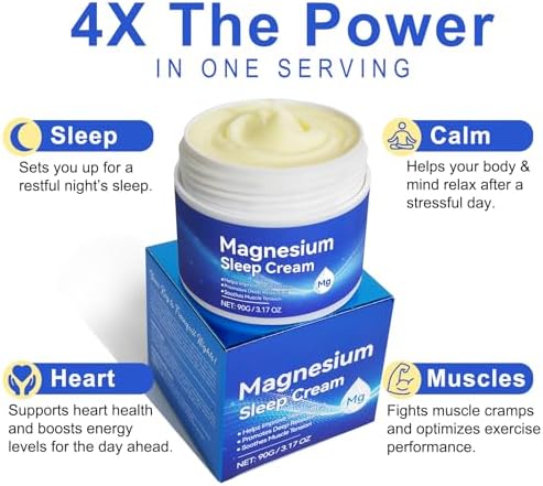 Magnesium Cream for Sleep, Topical Magnesium for Calm Cream, Magnesium Lotion for Sleep, Magnesium Foot Cream Helps Improve Sleep, Calm Cream with Magnesium for Calm & Relaxation-3.17 Oz