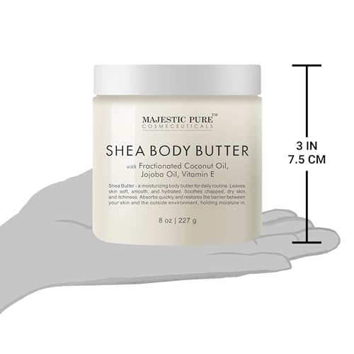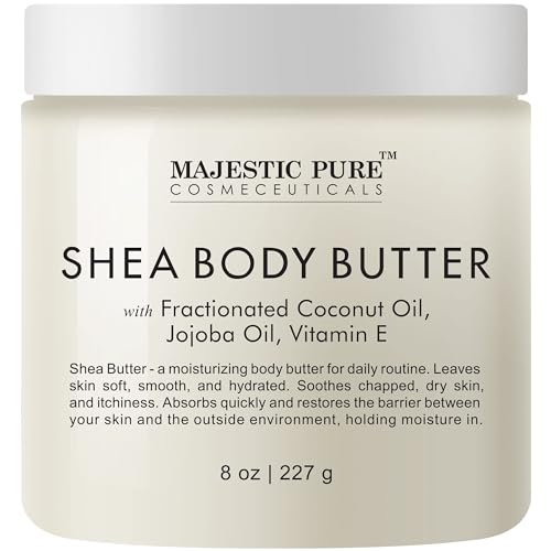 MAJESTIC PURE Shea Body Butter – Intense Hydrating with Fractionated Coconut Oil, Jojoba, and Vitamin E – Moisturize for Dry, and Oily Skin – For All Skin Types – Skin Care for Men and Women – 8 oz