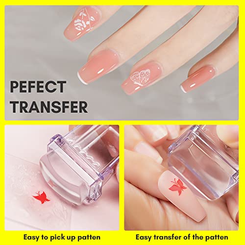 【Easy to Transfer】:The transparent design of the french nail art stamper allows the pattern to be clearly visible when transferring.The soft silicone nail stamper head easily reaches the edge of the nail and is very easy to pick up and transfer the pattern.The perfect nail tool for nail professional and beginers.