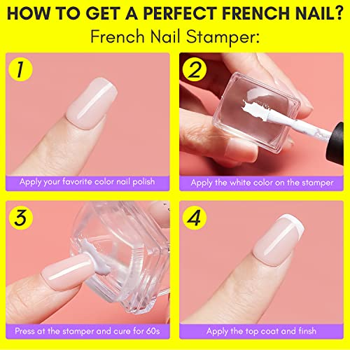 【2PCS French Nail Stamper】:The French nail stamper can be used to create different French nail art depending on the angle of use, such as classic smile French, widened French nail, very fine French nail, one-sided corner French, and double-sided corner French.If your nails are short, please Apply nail protector sticker before stamping.