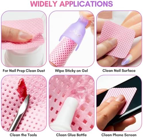 【LARGE QUANTITY & EASY TO CARRY】You will get 1000pcs no lint nail wipes disposable pads are easy to carry out. The pink lint free wipes is dry wipes and needs to be used together with nail polish remover to remove gel polish, which is harmless to your nails or skin.