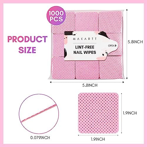 Makartt 1000pcs Pink Lint Free Nail Wipes
