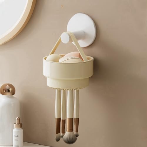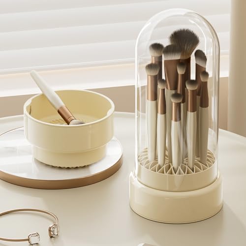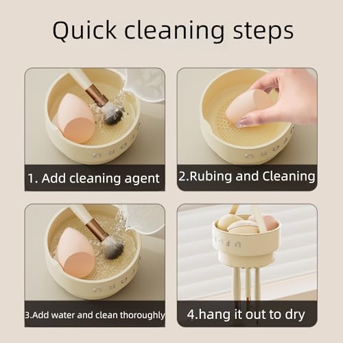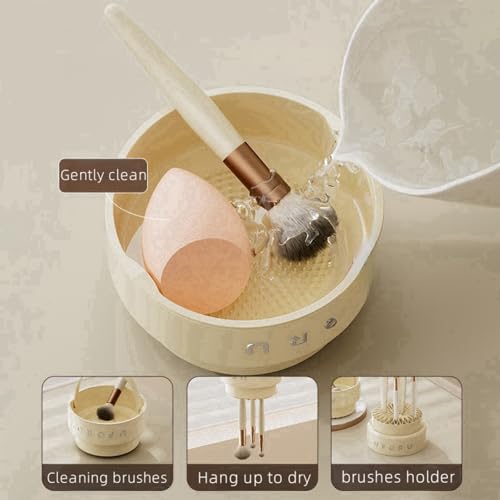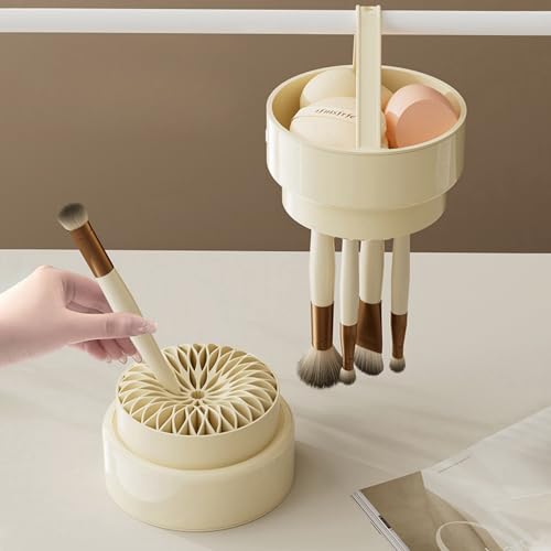 Makeup Brush Cleaner 3 in 1,Silicone Makeup Brushes Organizer with Cleaner Bowl and Brush Drying Holder,Cosmetic tools Cleaning Organizer for Storage & Air Drying (Cream)