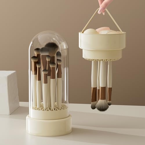 【Excellent makeup brushes holder】: It has a lot of mesh ports in different shapes and sizes that hold big and small makeup brushes,it has a transparent lid,It has a good dust-proof effect
