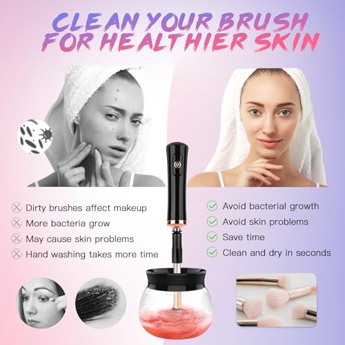Clean and Dry Quickly – Use the automatic makeup brush cleaner machine, no need to clean brushes by hand, quickly clean and dry in seconds. It’s recommended to clean makeup brushes once every two weeks. With a cleaning solution to achieve a better clean effect.