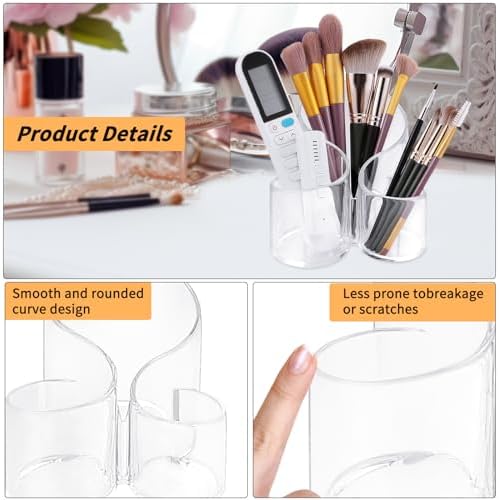 【Premium Material】Made from clear and safe acrylic material,smooth edges, thickened material makes the brush holder durable.this Transparent 3-compartment wave design desk office organizer allows you to easily see and locate your office accessories.
