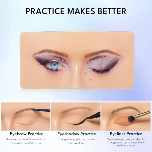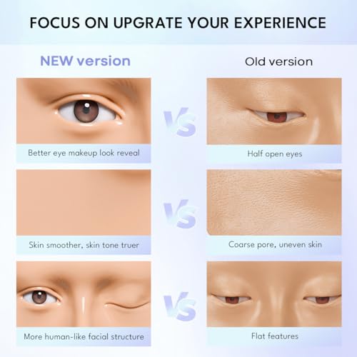 【All-Round Upgraded Makeup Practice Face】Skin is smoother, facial structure is more Realistic, better showcases eye makeup effects both with open and closed eye. It comes with two interchangeable iris colors for improved makeup coordination.
