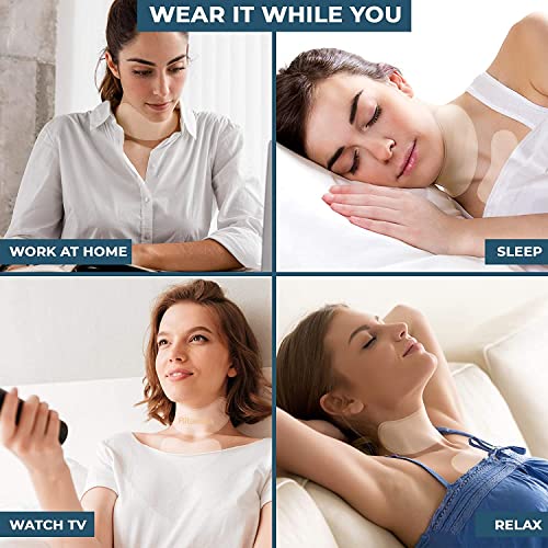 It’s suggested to wear the neck pad when you’re relaxing or sleeping, but not working, since the air that comes in may cause the pad to fall off. Make sure the skin is clean and have no moisturizer before use and do not use on broken skin.
