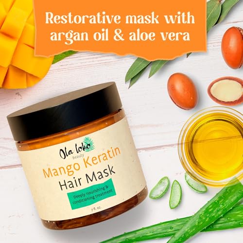 Mango Keratin Hair Mask – Keratin Hair Treatment for Dry Damaged Hair, Keratin Treatment at Home – Natural Hair Mask w/ Argan Oil & Aloe Vera, Deep Repair Hair Treatment, Protein Hair Treatment Masks