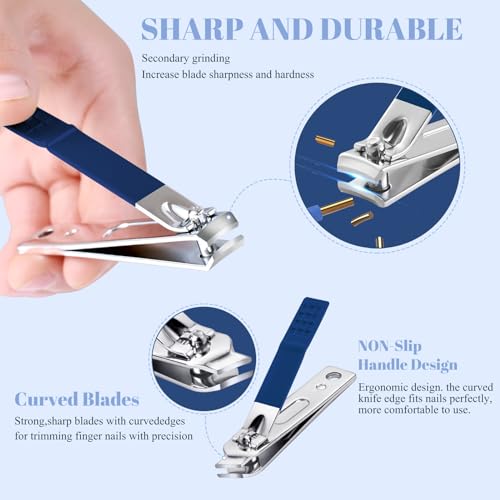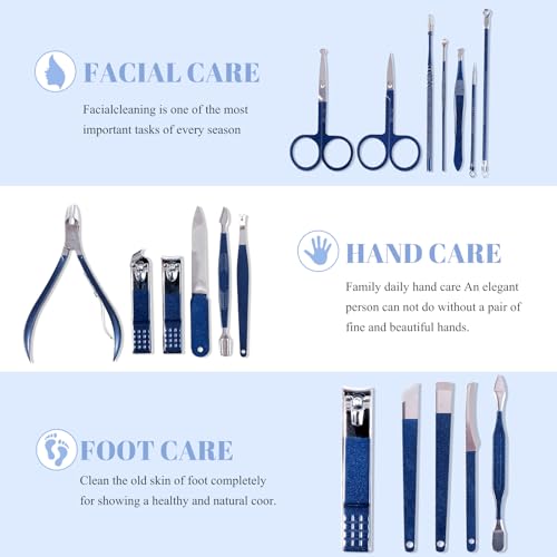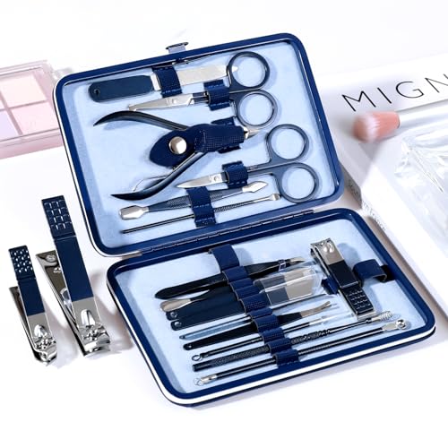 Manicure Set Pedicure Kit Nail Clippers Set Fingernail Clipper Set Ingrown Toenail Nail Kit Scissor Nail Trimmer Kit 18 Pieces Women and Men’s Care Grooming Tools with Fine Case (Dark Blue_18 Pieces)
