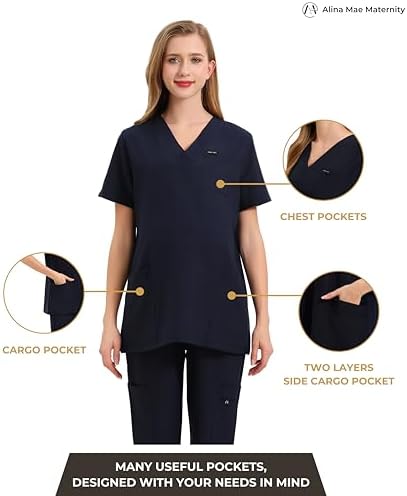 Maternity Scrub For Women Pregnant Doctor Uniform Pant Nurse Scrub w/ 6 Pockets