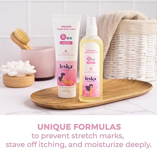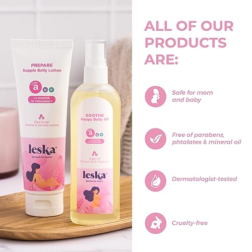 PART OF A 3 STAGE SYSTEM: Leska’s A-B-C system designed to keep your skin smooth & glowing.【A】Stage A (months 1-5): Prepare – Prepares your skin for your growing belly.【B】Stage B (months 6-9): Defend – Protects your skin to keep it radiant and beautiful.【C】Stage C (Postpartum): Restore – Baby is here! Help your skin snap back.