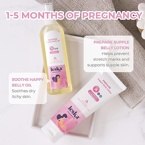 Maternity Stage A Set, PREPARE & SOOTHE Supple Belly Lotion & Happy Belly Oil (Pregnancy Months 1-5) Part of a Complete 3 Part Skin Care System, New Mom Gifts (Set of 2, 4-4.22oz)