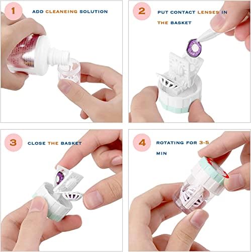 💦【Manual Contact Lens Cleaner】: Just put your contact lens in the basket with a little contact lenses solution, and then roate the lid to clean your lenses.