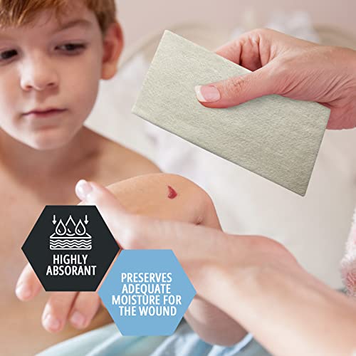 HIGHER ABSORBENCY-EFFICIENCY: Thanks to the natural seaweed fiber layer properties, our dressing is up to 20x times more absorbent than gauze. The result, is a wound dressing choice that is more comfortable and far more cost-effective.
