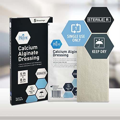MED PRIDE Calcium Alginate 4” x 8” Wound Dressing Pads| 5-Pack, Antimicrobial, Non-Stick Padding, Sterile, Highly Absorbent & Comfortable| Flexible & Gentle on The Skin, Faster Healing