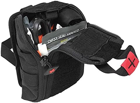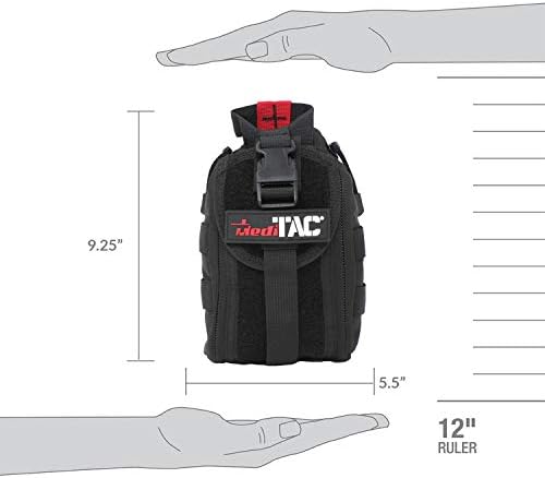 DURABLE MOLLE POUCH – Securely holds your first aid kit, 5.5″ tall x 9.25″ wide x 3″ deep, 19” unrolled open. Fits on your MOLLE compatible tactical vest or chest rig, gear bag, belt, or other equipment. Velcro fastener on the back allows for quick removal from belt or backpack.