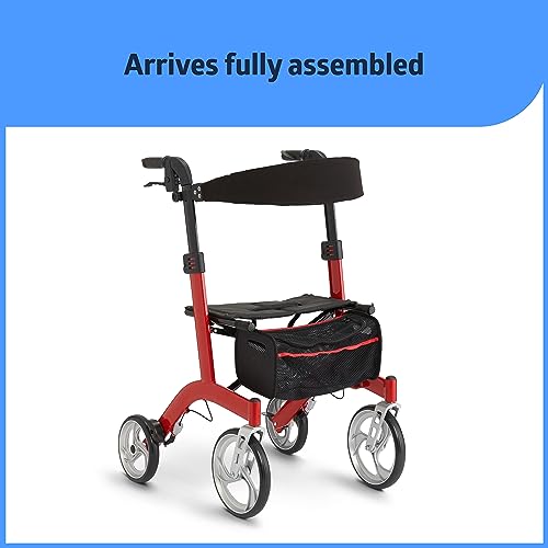 Medline European Style Lightweight Rollator with Backrest – Strong, Comfortable, Maneuverable Support & 300 lbs. Weight Capacity for Greater Freedom & Mobility