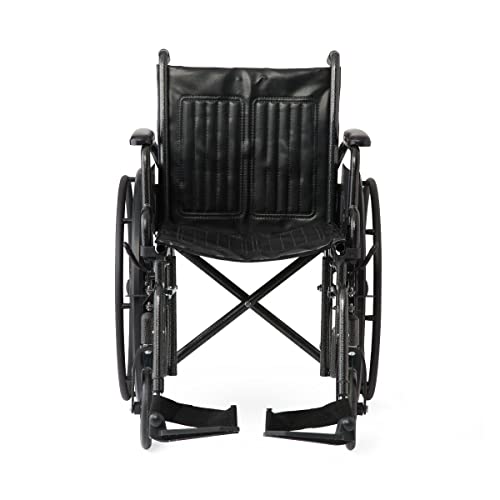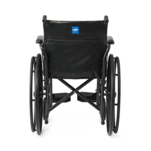 Medline K2 Basic wheelchair with 18″W seat, removeable desk-length arms and swing-away leg rests, Black