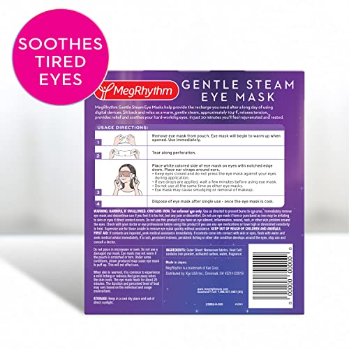 MegRhythm by Kao Gentle Steam Eye Mask, Lavender, Rejuvenates Eyes, Reduces the look of puffy eyes, Dermatologist and Ophthalmologist Tested, 5 Count