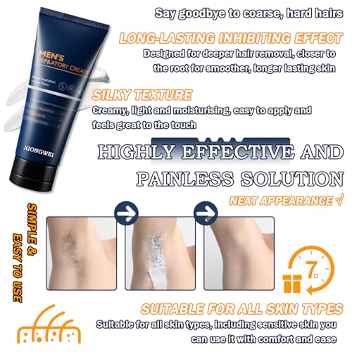 Men’s Hair Removal Cream,Flawless & Painless Depilatory Cream, Hair Remover for Unwanted Hair in Skin,Suitable for All Skin Types