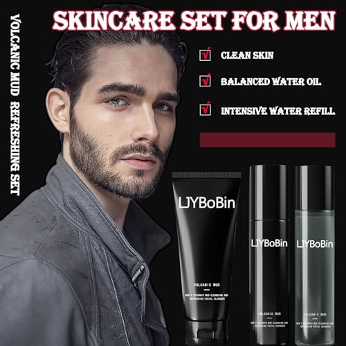 Mens Skin Care Set,Moisturizing Nourishing Facial Skincare Kit,Mens Facial Care Kit Includes Face Wash,Facial Toner & Facial Moisturizer,Oil-control Mens Gift Set for Dad Husband Boyfriend